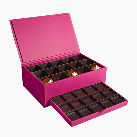กล่องช็อคโกแลตแข็งพร้อมกล่องแบ่งแบ่งช่องลิ้นชักริบบิ้นโลโก้ออกแบบได้ตามต้องการหรูหรา